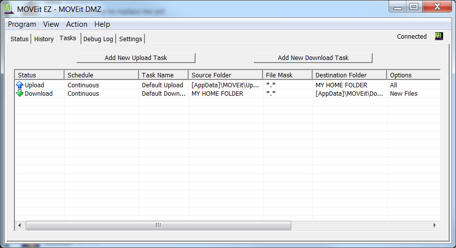 MOVEit EZ is een unieke beveiligde overdrachtclient die bestanden op geplande, geautomatiseerde, firewall-vriendelijke basis verplaatst tussen Microsoft Windows 7-, 8.1- en 10-desktops en een MOVEit Transfer-server, met minimale tussenkomst van de gebruiker.