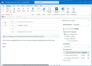 MOVEit Add-in voor Outlook biedt een uitzonderlijke gebruikerservaring die het gebruik van en de interactie met beveiligde bestanden intuïtief en probleemloos maakt. In tegenstelling tot de Ad Hoc Transfer Plug-in voor Outlook hoeven eindgebruikers de invoegtoepassing niet te installeren of in te schakelen. Gebruikers kunnen downloaden. Of u nu MOVEit Cloud gebruikt of MOVEit Transfer in Azure of on-premises, het is eenvoudig om het veilig delen van bestanden uit te breiden op een gebruiker-naar-gebruiker basis met behulp van MOVEit Ad Hoc