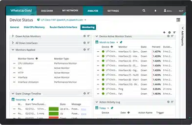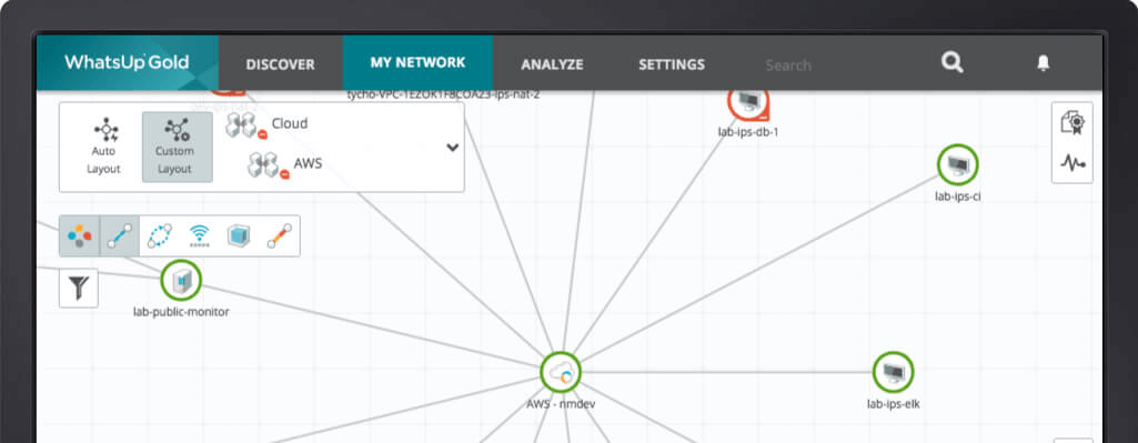 WhatsUp Gold biedt volledig inzicht in de status en prestaties van applicaties, netwerkapparaten en servers in de cloud of op locatie.